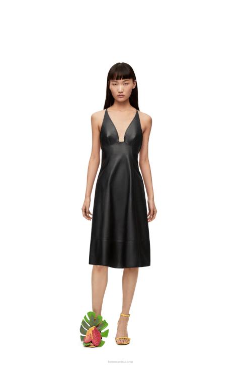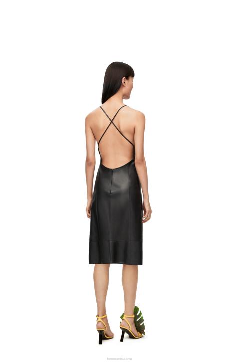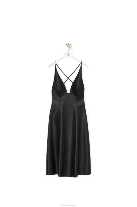 Dress in satin nappa with spaghetti straps that cross at the back. Deep V-neck embellished with a gold tone Anagram.