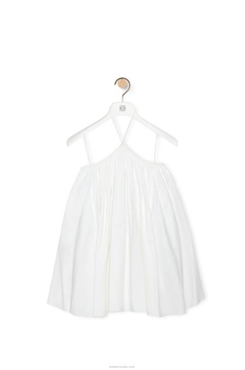 Halterneck mini dress in layered viscose and linen blend with side pockets.
