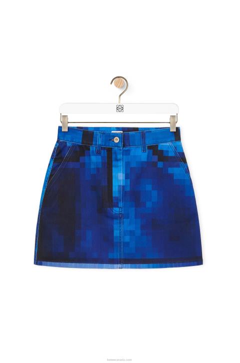 Mini skirt in denim with an all-over pixelated digital print, side pockets and one rear patch pocket.