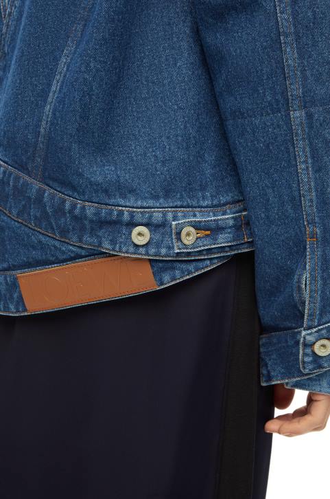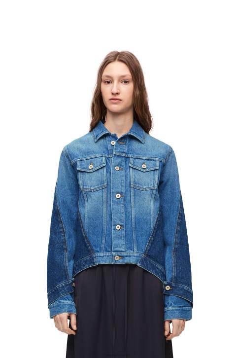 Deconstructed jacket crafted in medium-weight two-tone washed cotton denim.