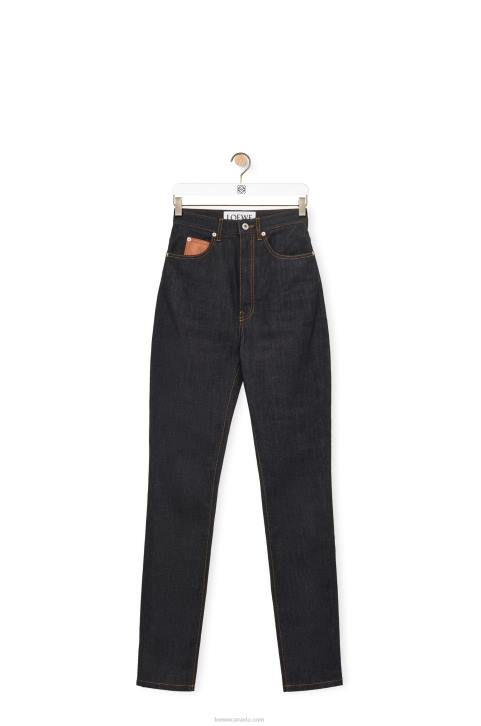Skinny five pocket jeans in raw denim with an Anagram leather coin pocket and contrast Loewe L printed on the back pocket.
