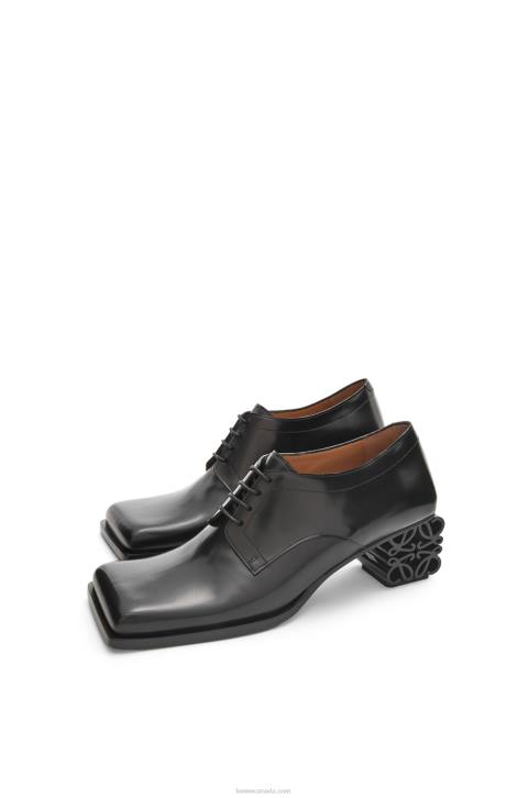 Lace up brogues in calfskin with a square toe and a jewellery inspired tonal Anagram heel in metal.