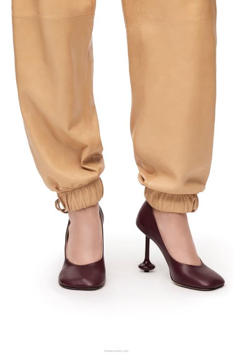 Second skin pumps in goatskin with a petal shaped toe and lacquered toy heel. The SS23 shoe collection plays on tension andcontrast: handcraft clashes with a fetish attitude and natural materials collide with the technical. Key details include playful heels, graphic logos and asymmetric toes and straps