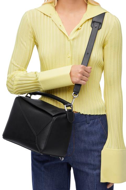 The Puzzle bag is the debut bag for LOEWE by Creative Director Jonathan Anderson. A cuboid shape and precise cutting techniquecreate Puzzle's distinctive geometric lines. This version is crafted in classic calfskin