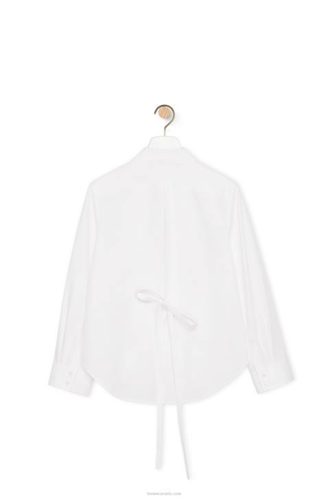 Cropped, trapeze shaped shirt in cotton poplin with a slit back and ties that can be fastened at the front or back.