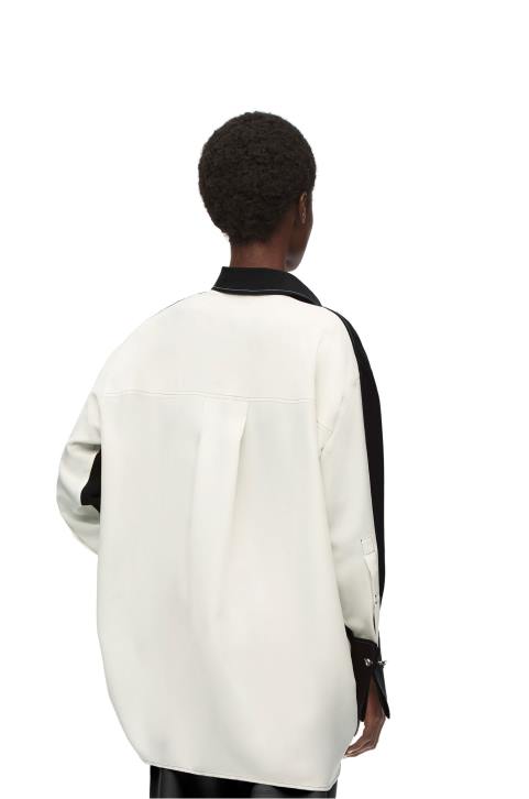 Two tone asymmetric tunic shirt in silk toile with a classic collar and French cuffs with balloon knot cufflinks.