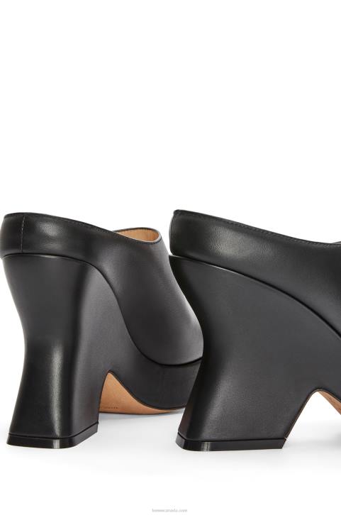 Wedge clog in calfskin with a 110mm heel. The SS23 shoe collection plays on tension and contrast: handcraft clashes witha fetish attitude and natural materials collide with the technical. Key details include playful heels, graphic logos and asymmetric toes and straps
