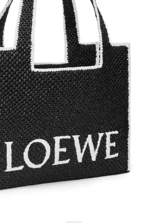The LOEWE Font Tote is a cuboid bag woven entirely in raffia with a contrasting LOEWE signature. This is a large version.