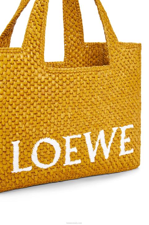 The LOEWE Font Tote is a cuboid bag woven entirely in raffia with a contrasting LOEWE signature. This is a small version.