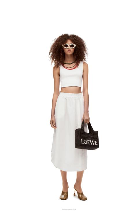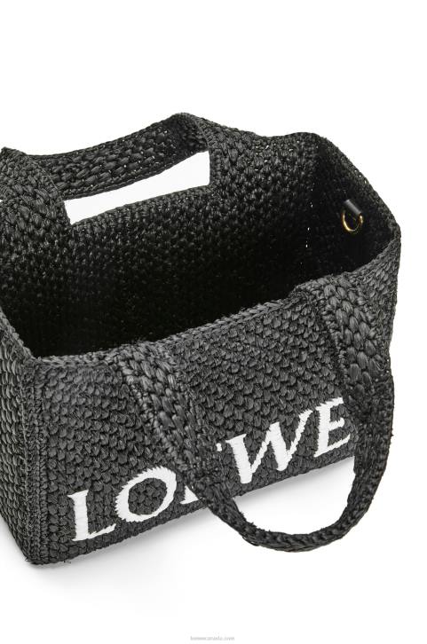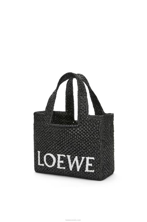 The LOEWE Font Tote is a cuboid bag woven entirely in raffia with a contrasting LOEWE signature. This is a small version.