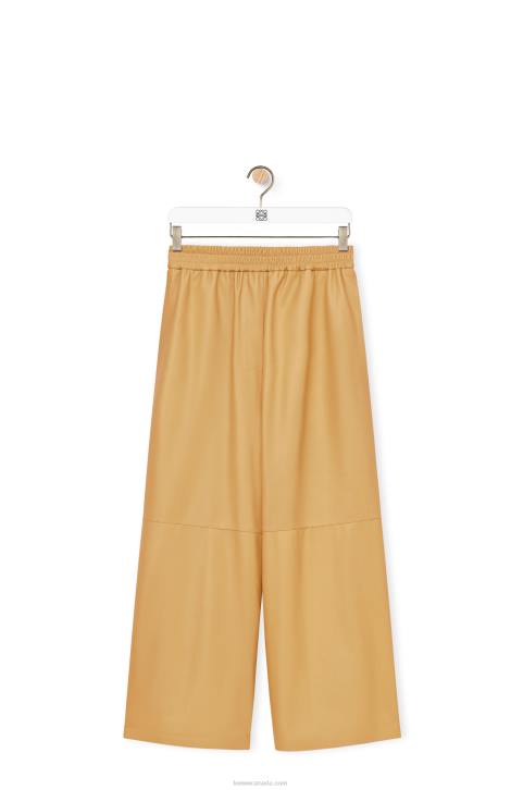 Cropped wide leg trousers in lightweight satin nappa lambskin with an elasticated waist, side pockets and a rear embossedAnagram patch pocket.