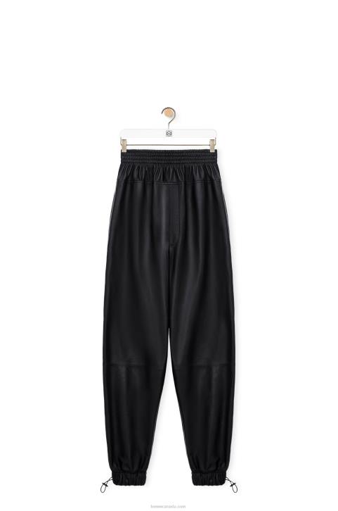 Jogging trousers in satin nappa with elongated balloon silhouette and tapered legs. Elasticated hems with leather drawstrings.
