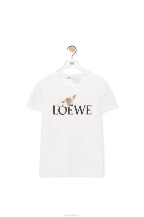 Crew neck T-shirt in lightweight jersey with a LOEWE print on the front and Heen motif in thread embroidery. This T-shirtis part of the LOEWE x Howl's Moving Castle capsule collection.