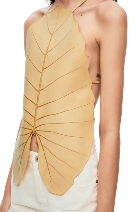 Backless top crafted from a real Alocasia Macrorrhiza leaf bonded with jersey, rendered wearable with the beLEAF technology.